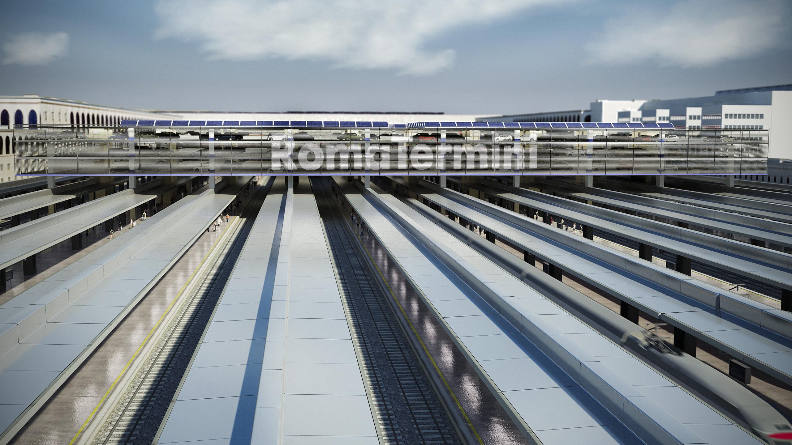 En Roma, la gran estación del ferrocarril, donde cada día llega un gran número de trenes, se llama “Stazione Termini”.