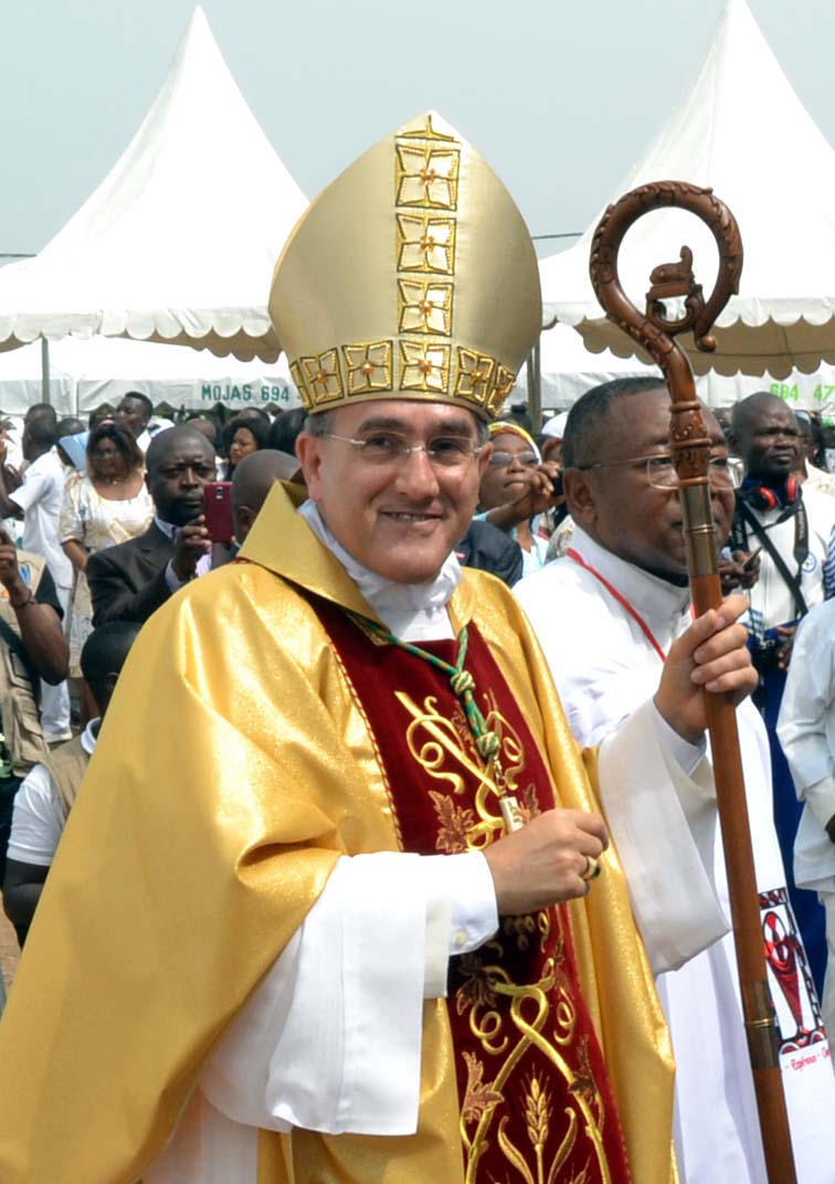 Devenu évêque sans aucun mérite de ma part, je saisis l’occasion que m’offre ce jour pour exprimer une fois de plus ma profonde gratitude d’abord au Souverain Pontife Saint Jean Paul II qui m’a nommé évêque coadjuteur en 1984, ensuite à Benoît XVI, aujourd’hui retraité et à Sa Sainteté le Pape François qui depuis bientôt quatre ans conduit la barque de Pierre. Leur sollicitude constante exprimée à travers les différents dicastères romains et au quotidien par le biais de la Nonciature Apostolique, m’a permis d’aller toujours de l’avant, surtout dans les moments les plus difficiles de mon chemin de croix épiscopal.