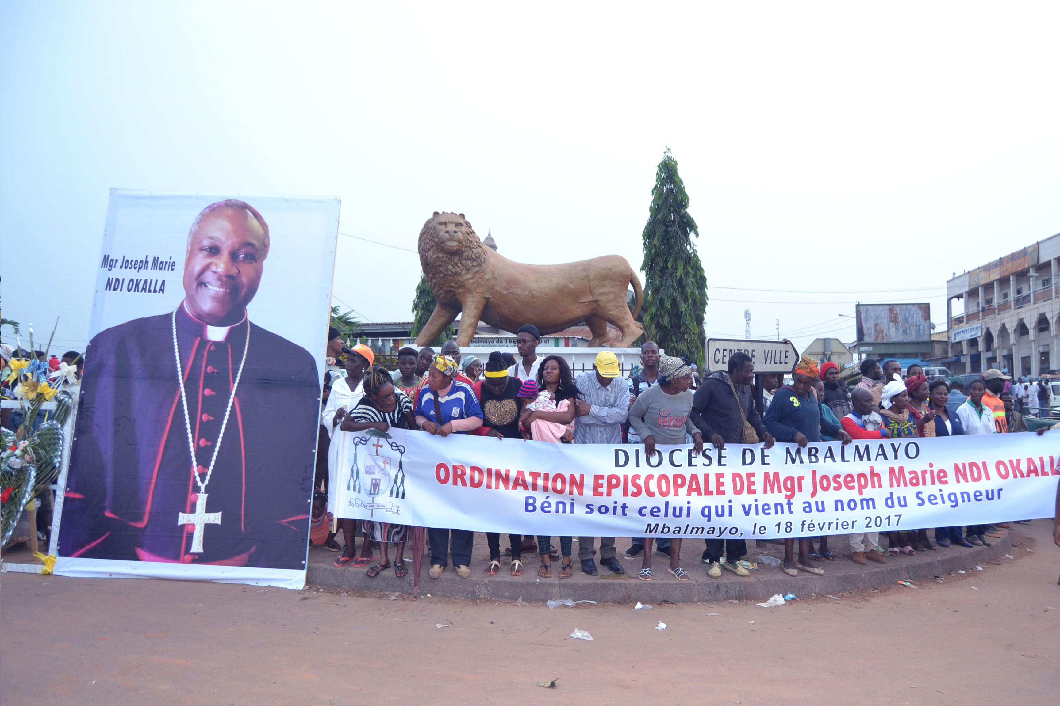 Marie Ndi-Okalla, présidée par le Nonce Apostolique au Cameroun et en Guinée Équatoriale, Son Excellence Mgr Piero Pioppo, le 18 février 2017, en plein air devant la Cathédrale de la ville de Mbalmayo.
